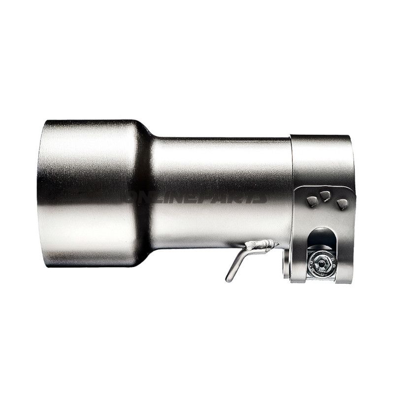Produkt: Anschlussrohr/Reduktionsadapter für universelle Schalldämpfer von Leo Vince. Dieses Rohr reduziert den Durchmesser des Abgasauslasses von 54,0 mm auf 38,10 mm und ist dafür vorgesehen, den Schalldämpfer-Einlass mit einem kleineren Abgasauslass zu verbinden.