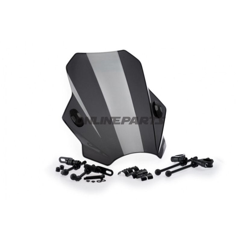 Der Schirm ist vorne am Motorrad angebracht, typischerweise im Bereich zwischen dem Lenker und dem Scheinwerfer. Seine Hauptfunktion besteht darin, den Wind vom Fahrer abzuleiten, was den Komfort beim Fahren, insbesondere bei höheren Geschwindigkeiten, erhöhen kann. Darüber hinaus trägt er zu einem strömungsoptimierten Profil bei, was sich positiv auf die Kraftstoffeffizienz auswirken kann.