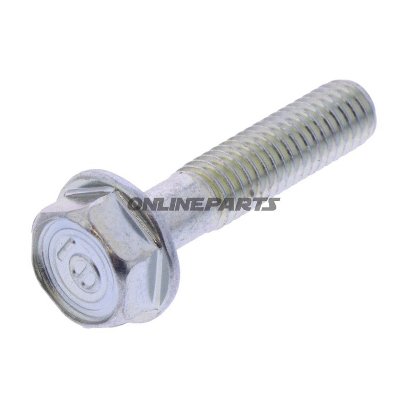 Diese Schraube hat eine M6 x 1.00 Gewindegröße und ist 28.0 mm lang, mit einer Sechskantkopf-Form, die eine einfache Installation und Entfernung mit Standardwerkzeugen ermöglicht. Sie ist ohne Dichtung oder Unterlegscheibe gestaltet, was typisch für diese Art von Schraube ist, die in Motorradmotoren verwendet wird.