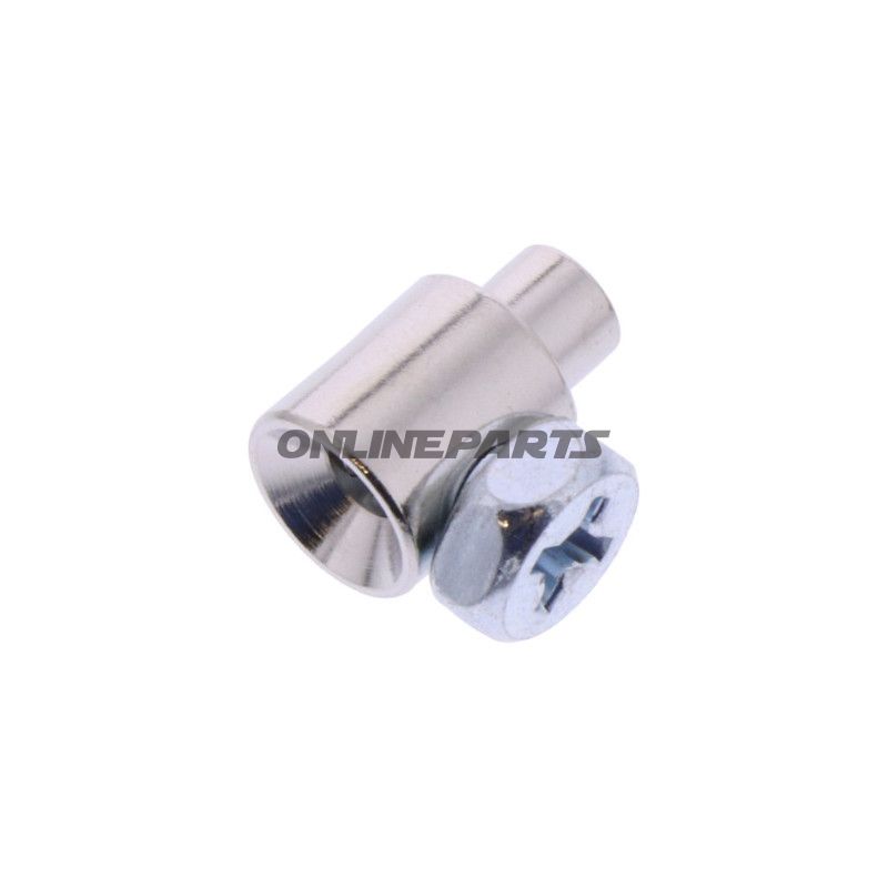 Funktion: Die primäre Funktion der Schraubnippel besteht darin, das Kabelende in einer Halterung oder Justierschraube zu sichern, sodass die Zugkraft direkt und ohne Gleiten übertragen wird. Sie wird typischerweise in Gasgriffen, Kupplungs- und Bremsanordnungen verwendet, bei denen das Kabelende in einer Klemme oder einem Kabelstop gesichert werden muss. Die klare Abmessung (Durchmesser, Länge und Bohrung) erleichtert dem Mechaniker das Anpassen des Nippels an vorhandene Kabelhüllen und Befestigungen.