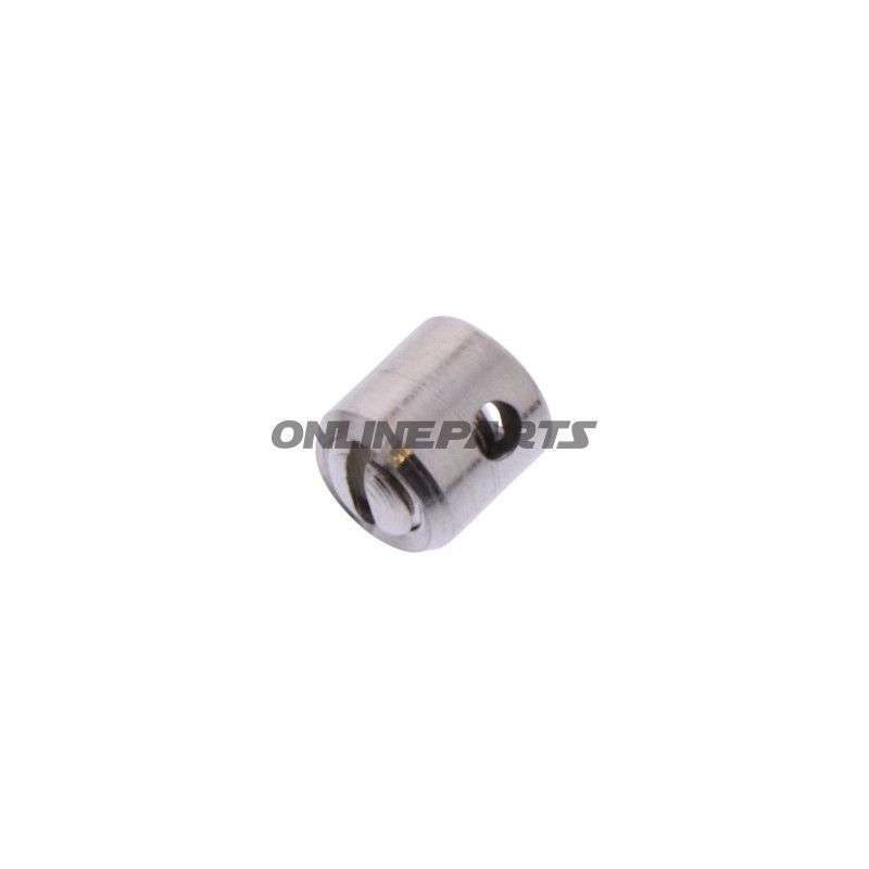 Produkt: Schraubnippel von JMP (MPN: 731.06.71, GTIN: 4043981395679). Dieser Schraubnippel ist für das Abschließen von Bowdenkabeln vorgesehen und fungiert als Schnittstelle zwischen Kabelschaft und äußeren Halterungen oder Einstellschraube.