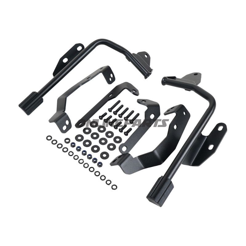 Der Seitenkofferhalter ist aus langlebigen Materialien gefertigt, die dafür ausgelegt sind, den Belastungen standzuhalten, die während der Fahrt auftreten können. Die robuste Konstruktion stellt sicher, dass die Halter sowohl der täglichen Nutzung als auch den Herausforderungen längerer Reisen standhalten können. Die Materialien sind aufgrund ihrer Gewichtsstärke und Widerstandsfähigkeit gegenüber Witterungseinflüssen ausgewählt, was sie für verschiedene Fahrbedingungen geeignet macht.