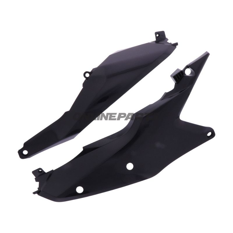 Das Set besteht aus robusten Materialien, die eine lange Lebensdauer und Widerstandsfähigkeit gegen Abnutzung gewährleisten. Das schwarze Design verleiht ein elegantes Aussehen, das die meisten KTM-Modelle ergänzt. Da die Seitenpaneele so konzipiert sind, dass sie leicht zu installieren sind, erfordert es kein Spezialwerkzeug oder umfassende mechanische Erfahrung, was es für die meisten Motorradbesitzer zugänglich macht.