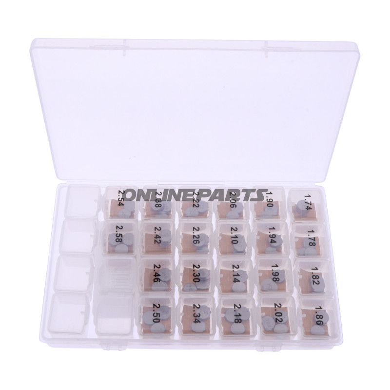 Die Abstandsscheiben haben einen Durchmesser von 8,9 mm und eine Dicke, die von 1,74 mm bis 2,58 mm variiert. Die präzise Dicke ermöglicht eine genaue Anpassung des Ventilspiels, was entscheidend ist, um die Leistung und Effizienz des Motors aufrechtzuerhalten.