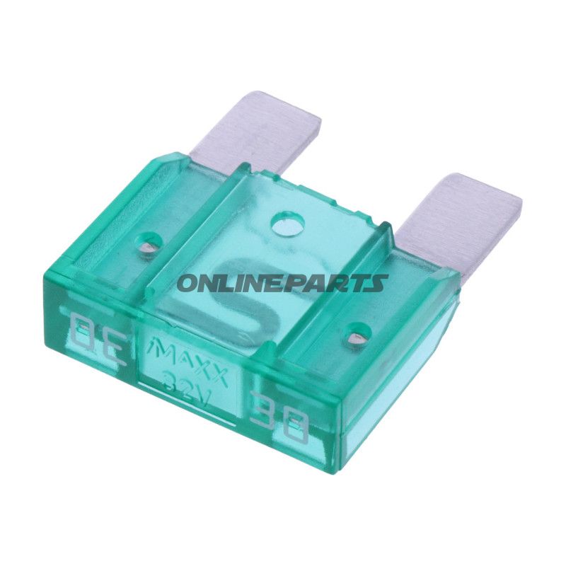 Produkt: Maxi-Blattsicherung, Modell von JMP (MPN: 149.01.15, GTIN: 4043981410501). Diese Sicherung ist für Kreise vorgesehen, in denen eine Nennstromstärke von 30 Ampere bei niedriger Spannung benötigt wird (je nach Anwendung bis zu 32–36 V) und bei denen eine physisch größere Blattform eine bessere thermische Handhabung und geringeren Widerstand als herkömmliche Mini- oder Midi-Blattsicherungen bietet.