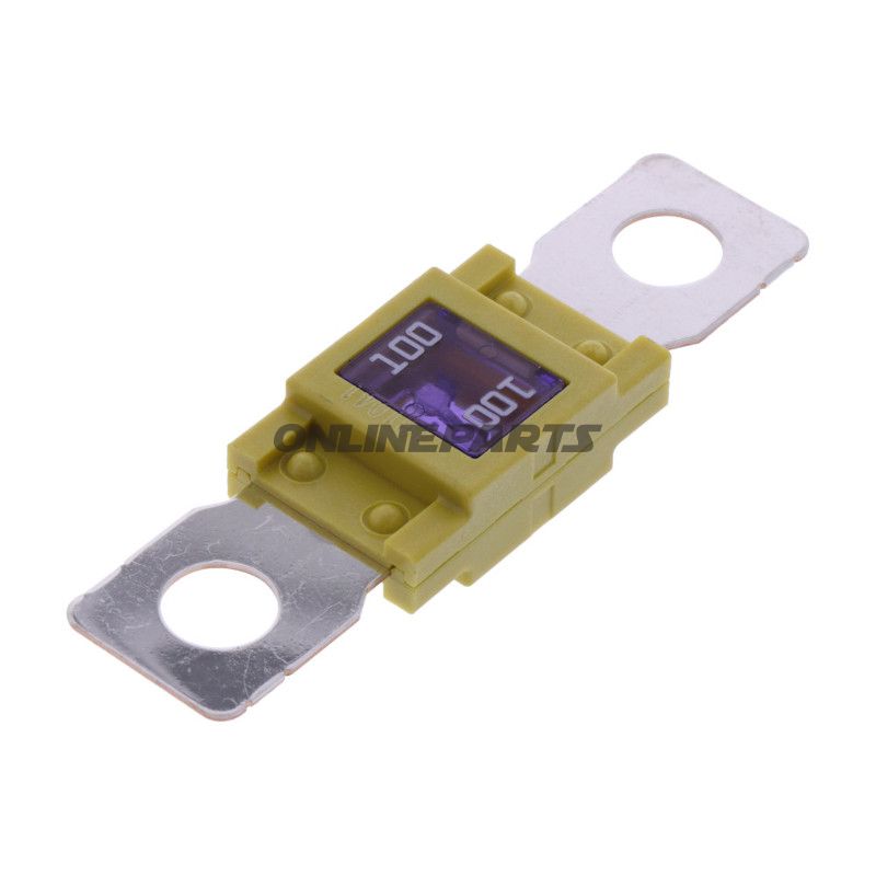 - Sicherungselement: Metallischer Schmelzdraht dimensioniert für 100 A Charakteristik, im Gehäuse eingebettet.