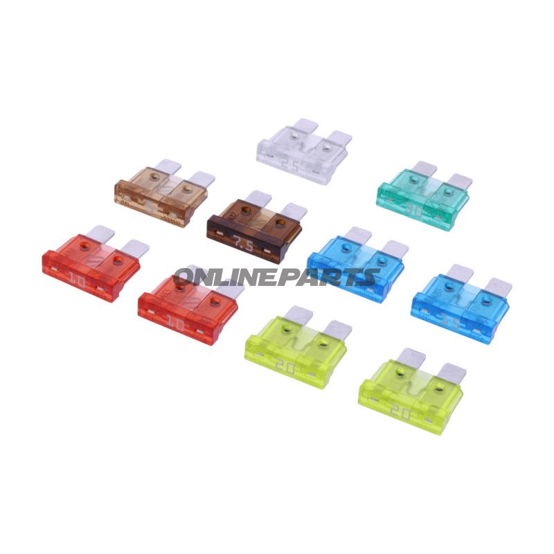 Die Sicherungen besitzen ein Gehäuse aus klarem, spritzwassergeschütztem Kunststoff, der eine visuelle Prüfung sowohl der Stromschiene als auch des Schmelzstreifens ermöglicht. Die Stifte bestehen aus bleihaltigem Kupferlegierungsmaterial, was eine niedrige Übergangswiderstand und gute elektrische Leitfähigkeit gewährleistet. Die Materialauswahl entspricht dem Standard für automotive Blade-Sicherungen und ist so ausgelegt, Vibrationen und Temperaturwechsel in Fahrzeugumgebungen standzuhalten, ohne unrealistische Versprechungen auf extreme Haltbarkeit zu machen.