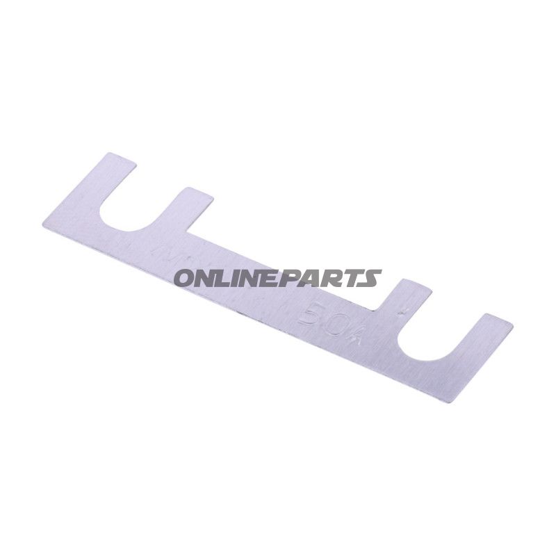 Produkt: Sicherung STREIF 50A von JMP (MPN: 149.00.56, GTIN: 4043981409444). Diese Typ ist eine bolzengestützte Streifen-Sicherung (bolt down/strip fuse) konzipiert zum Schutz elektrischer Schaltkreise in Fahrzeugen, Marine- und industriellen Niederspannungsanlagen.