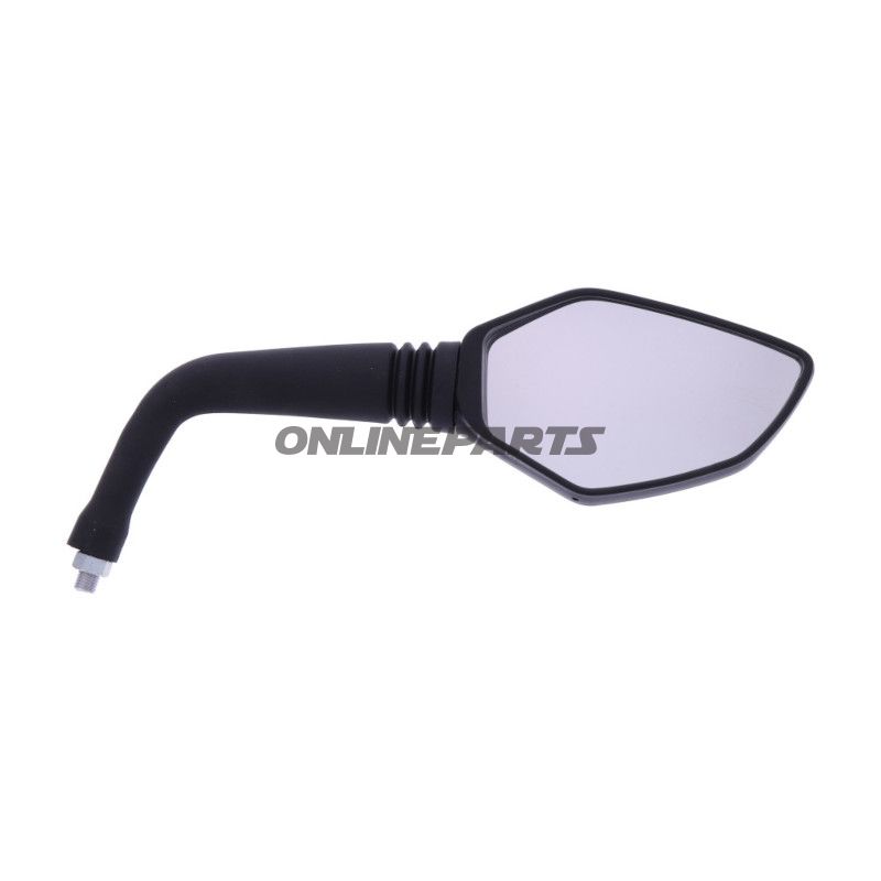 Das JMP-Spiegel für die linke Seite ist so gestaltet, dass es dem Originalteil in Form und Funktion entspricht. Dieser Spiegel ist ein wichtiges Sicherheitselement, das dem Motorradfahrer hilft, einen klaren Blick auf den Verkehr hinter sich zu haben. Das Spiegelglas hat einen minimierenden Effekt, der die Verzerrung des gesehenen Bildes reduziert und somit die Sicherheit beim Fahren verbessert. Der Spiegel ist am Lenker montiert und hat eine M10 x 1.25 Gewindeverbindung für eine einfache Installation.