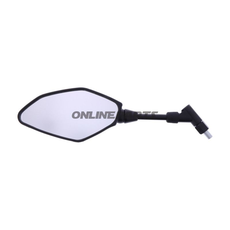 Der Spiegel ist aus langlebigem Kunststoffmaterial gefertigt, was ein gutes Gleichgewicht zwischen Gewicht und Festigkeit gewährleistet. Die schwarze Farbe verleiht ein elegantes Aussehen, das gut zu den meisten Yamaha Motorrädern passt. Der rhombusförmige Kopf des Spiegels ist so gestaltet, dass er optimale Sichtbarkeit bietet, was für sicheres Fahren entscheidend ist.