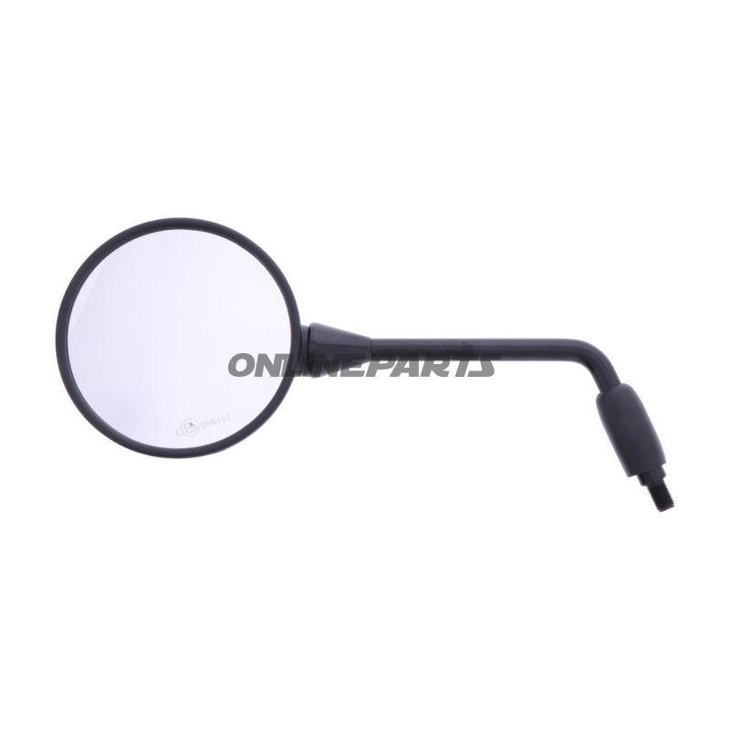 Der Spiegel besteht aus Kunststoff, was ihn leicht und widerstandsfähig gegen gewöhnlichen Verschleiß macht. Die schwarze Farbe verleiht ihm ein elegantes Aussehen, das gut zum Design des Motorrads passt. Der Spiegel ist e-geprüft, was bedeutet, dass er die erforderlichen europäischen Anforderungen an Zulassung und Sicherheit erfüllt.