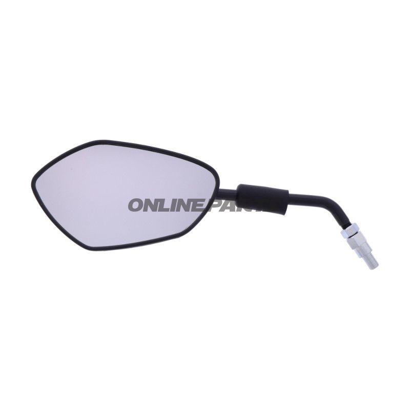 Der Spiegel ist aus Kunststoff gefertigt, was ihm eine gute Balance zwischen Gewicht und Haltbarkeit verleiht. Das schwarze Finish sorgt dafür, dass er gut in das Gesamtdesign der meisten Motorräder passt. Da er Teil der essentiellen Sicht ist, ist es wichtig, den Spiegel in gutem Zustand zu halten, um optimale Sicherheit beim Fahren zu gewährleisten.