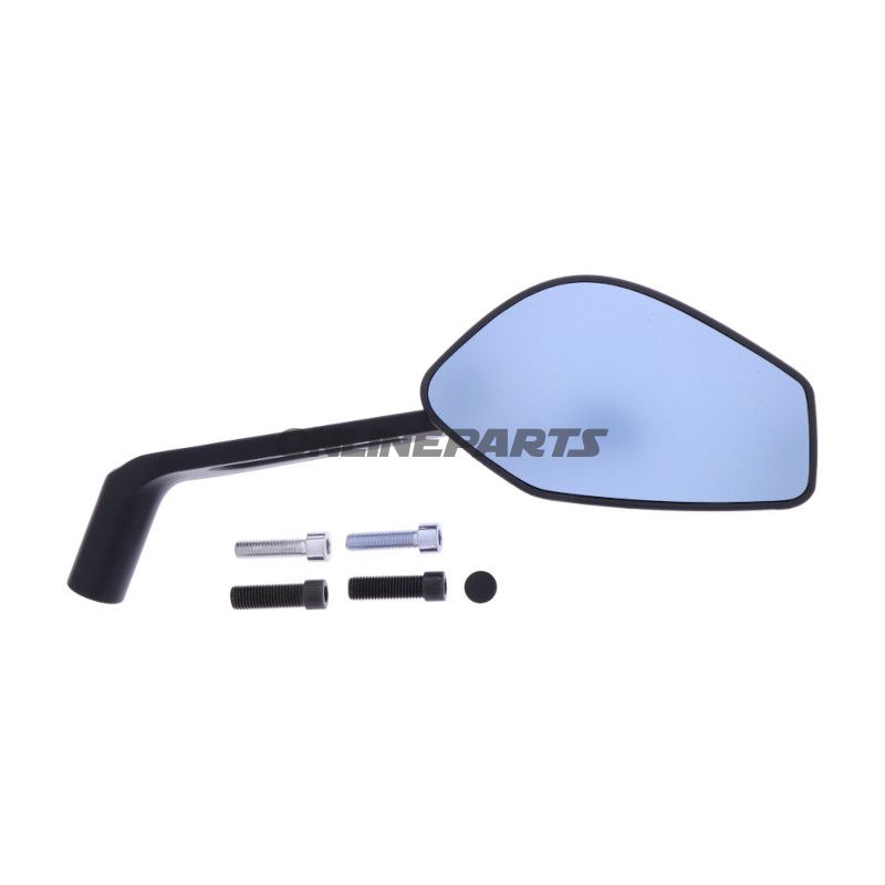 Produkt: Schwarzer Spiegel rechts von FAR (MPN: 713.08.26, GTIN: 8052990218561). Dies ist ein universeller Rechtsseitenspiegel, der für die Montage in Lenkerenden oder auf Spiegelgewinden an Motorrädern, Rollern und anderen Zweirädern konzipiert ist, bei dem ein rhombenförmiger Bar-End-Spiegel gewünscht wird.