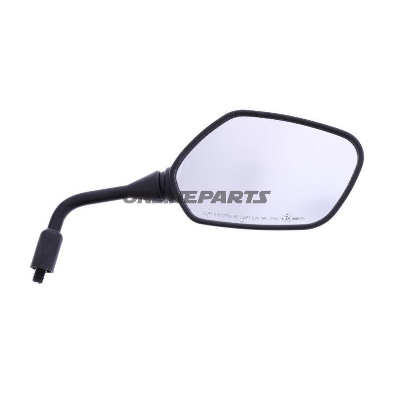Der Spiegel ist aus langlebigem Kunststoffmaterial gefertigt, das eine langfristige Nutzung unter verschiedenen Wetterbedingungen gewährleistet. Er ist E-geprüft, was bestätigt, dass er die erforderlichen Sicherheitsstandards für den Straßenverkehr erfüllt. Der rhombusförmige Spiegelkopf bietet ein breites Sichtfeld, was entscheidend für die Sicherheit des Motorrads und das Bewusstsein des Fahrers für die Umgebung ist.