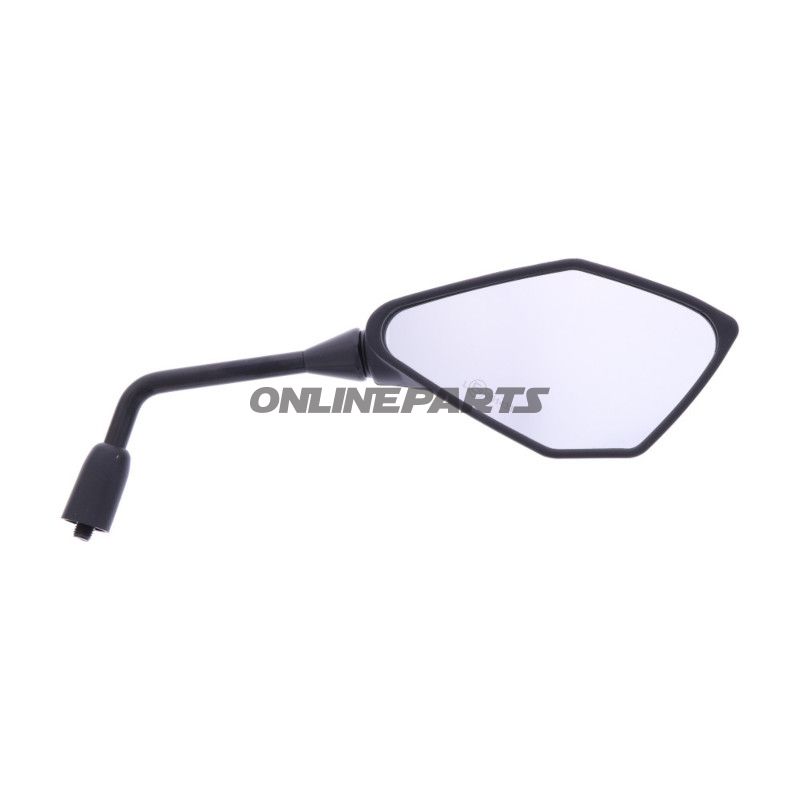 Spiegel FAR 713.06.89 rechts, schwarz rhombusförmig Spiegel für Kawasaki. Spiegelbreite 170 mm und Höhe 89 mm. Kunststoffgehäuse, Rechtsmontage.