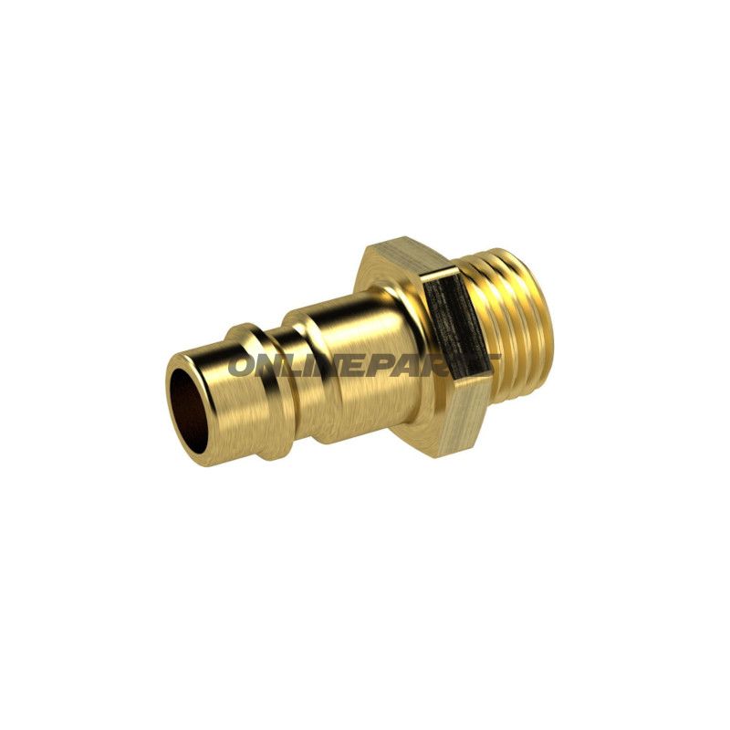 Produkt: Stiftstutze mit Außengewinde aus Messing von Riegler (MPN: 656.07.28). Dieses Bauteil ist vorgesehen für eine schnelle, schraubfeste Verbindung von Schlauch- und Schnellverschluss-Systemen mit einem Innendurchmesser entsprechend DN 7,2 und DN 7,8.
