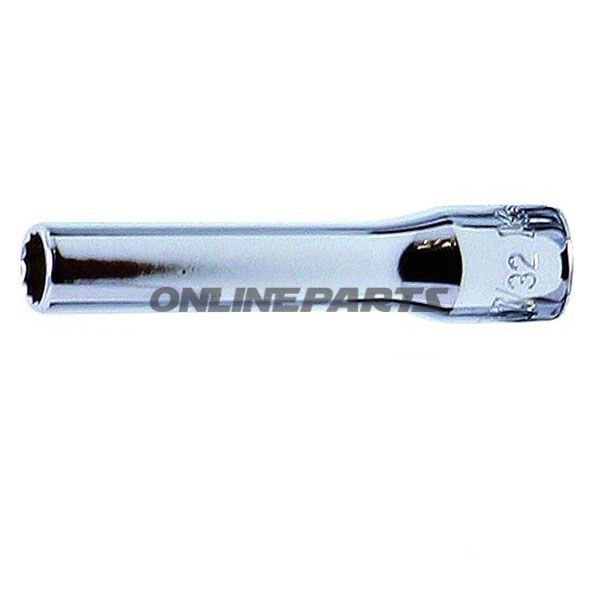 Dieser Sechskantschaft ist ein 1/4" Einsatz (Vierkant passt auf 1/4-Zoll-Antrieb) und für 12-kantige Schrauben und Muttern mit Schlüsselweite (SW) 11 mm konzipiert. Mit einer Gesamtlänge von 50 mm bietet er zusätzlichen Reichweite in engen Montageräumen, ohne unnötig lang zu sein.
