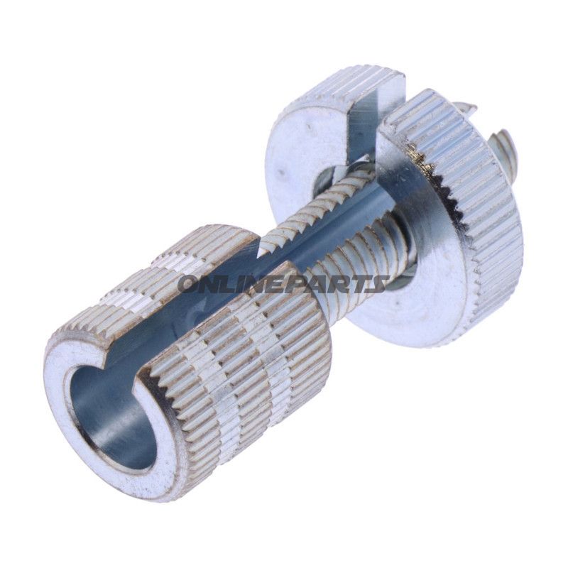 Produkt: Stiftschraube gesetzt JMP M8X1.00 38 mm. Dies ist eine Justierschraube mit Nut für herkömmliches Schraubendreherwerkzeug, vorgesehen für Feinjustierung und Befestigung in Motorradkomponenten und zugehörigen mechanischen Verbindungen.