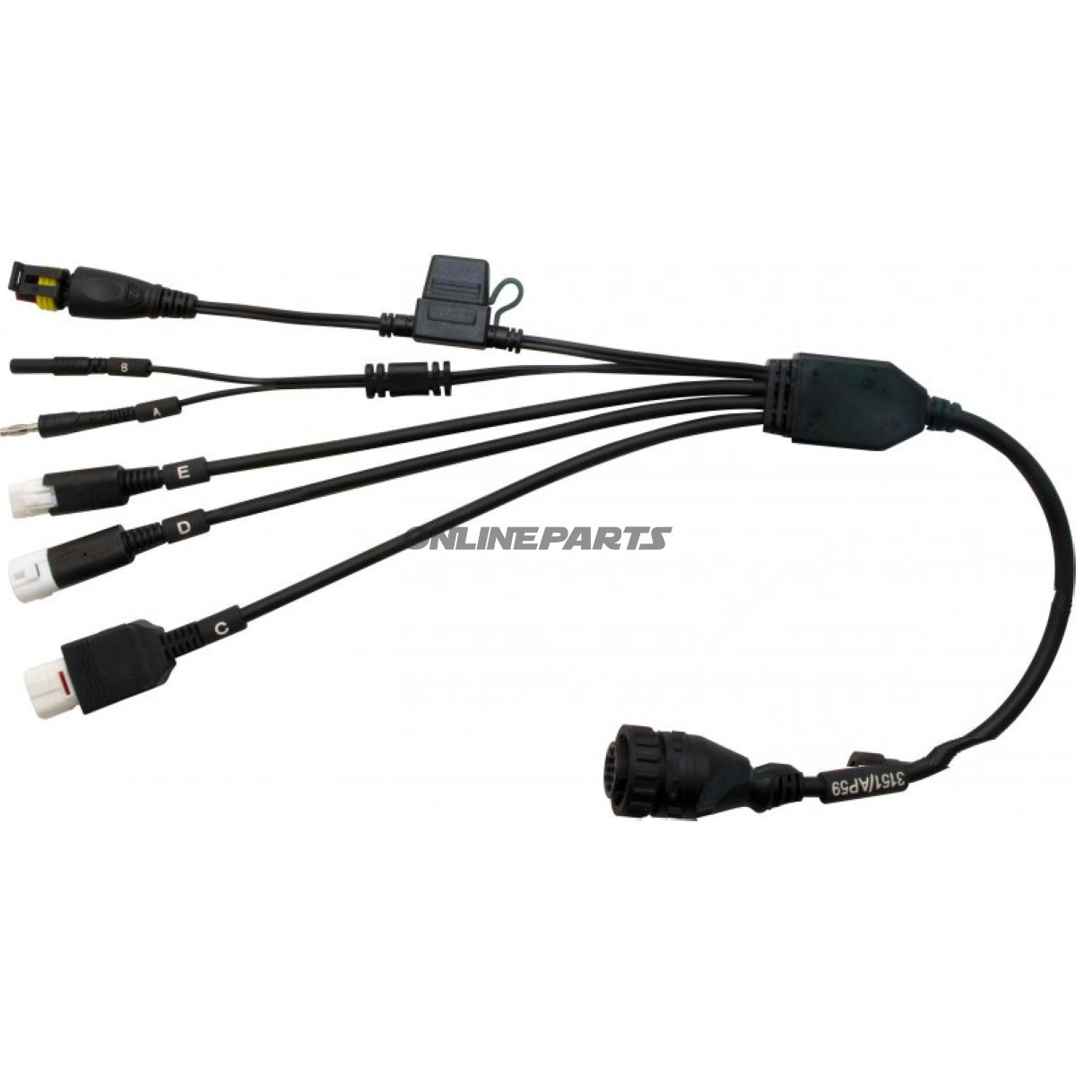 Adapterkabel Texa 668.04.19 / 3909878 För Motorrad-ECU-Diagnose. 6 Steckverbinder: 4-polig, 2×3-polig, 2× Stecker/Buchse og 2-polig Stromanschluss. Ersetzt 3151/AP40 AP47 AP49.