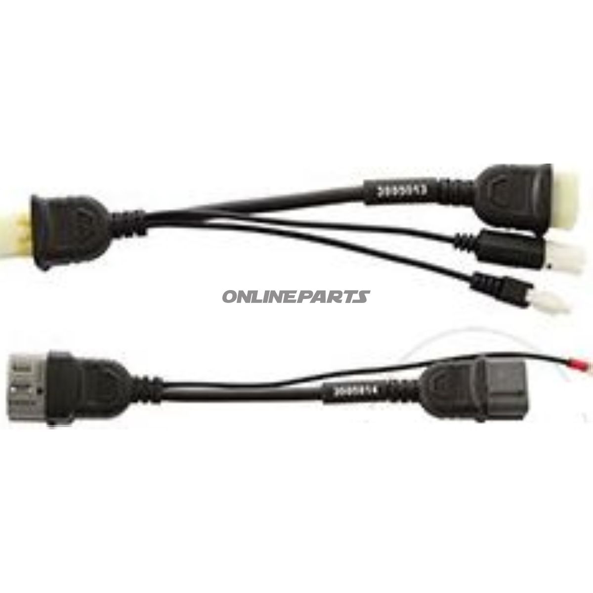 Dieses Set von Texa (MPN: 668.02.63) besteht aus zwei spezifischen Adaptern, die dafür vorgesehen sind, eine elektrische Verbindung zu bestimmten Steckern an Kawasaki Jet-Ski/Modellen herzustellen. Die Adapter (oft als PVC1 und PVC2 bezeichnet) werden nicht an den herkömmlichen Diagnosestecker angeschlossen, sondern direkt an fabriksspezifische Stecker am Fahrzeug. Das Set ermöglicht die Kommunikation zwischen der Fahrzeugelektronik und einem Diagnosesystem unter der Voraussetzung korrekter Anwendung und mit anderem Zubehör.