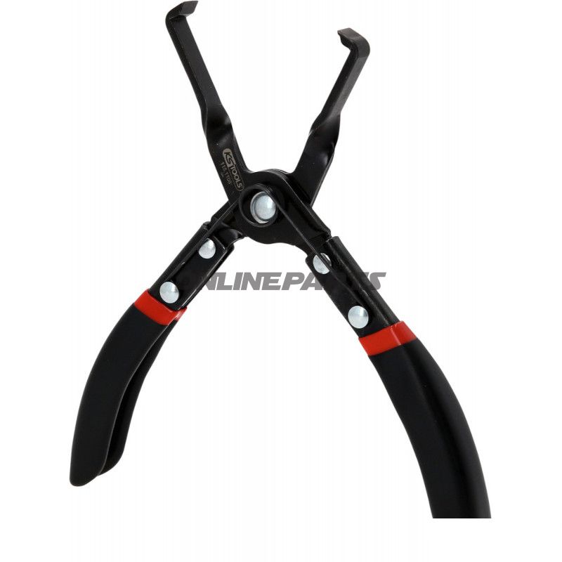 Produkt: Abmeldewerkzeug für elektrische Verbindungen von KS Tools (MPN: 636.01.46, GTIN: 4042146964620). Dieser Spezialzange ist darauf ausgelegt, elektrische Steckverbinder sicher und effizient zu lösen, wenn Eingriffe in Verriegelungsfedern oder Drückfedern erforderlich sind.