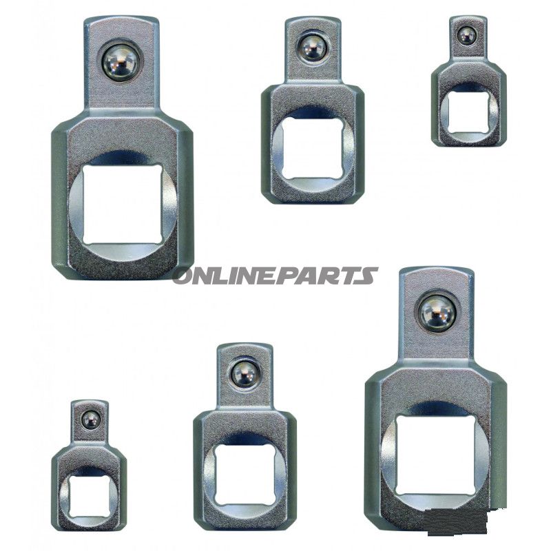 Adapter lenken und verschieben die Drehachse, sodass Drehmoment und Bewegung in einem Winkel zur ursprünglichen Richtung des Werkzeugs übertragen werden können. Dadurch wird der Zugang zu Schraubverbindungen und Muttern ermöglicht, die mit geraden Verlängerungen oder Ratschen schwer oder gar nicht erreichbar sind. Adapter können allein verwendet oder mit Verlängerungen und anderen Adaptern kombiniert werden, um extrem schwer zugängliche Positionen zu erreichen.