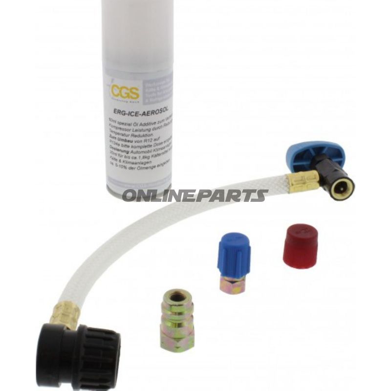 Dieses Umbauset ist dafür vorgesehen, Klimaanlagen zu konvertieren, die ursprünglich R12 (CFC) als Kältemittel verwendeten, damit sie R134a (HFC) nutzen können. Das Set wird vollständig mit erforderlichen Adaptern, Befüllschlauch und Kennzeichnungsaufkleber geliefert und enthält außerdem spezielles Öl, das für die Retrostick-Umrüstung vorgesehen ist (ERG-ICE-AEROSOL Retro Stick R12-R134A).