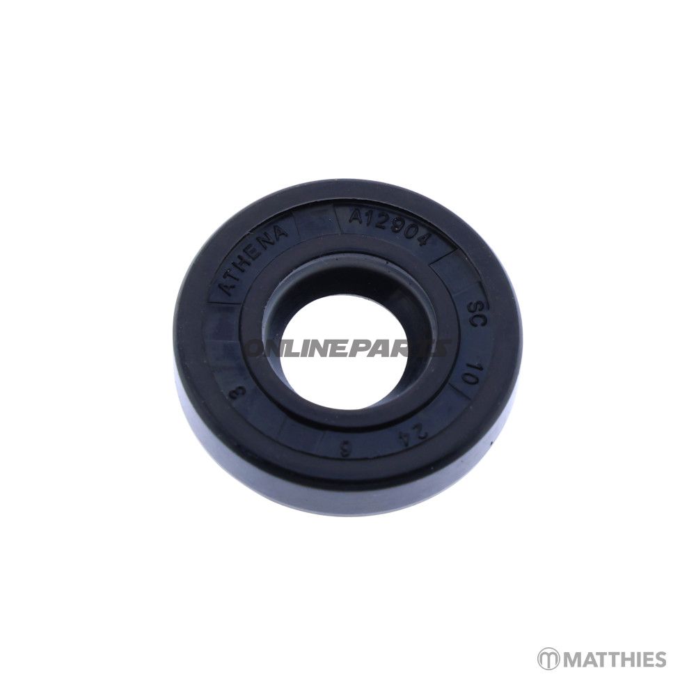 Produkt: Ölpackung/Simmerring 10×24×6 mm von Athena. Dieses Produkt wird unter der Marke Athena (GTIN: M730000225000, MPN: 735.06.62) geliefert und ist dafür vorgesehen, rotierende Wellen abzudichten und das Austreten von Öl oder Getriebeöl zu verhindern.