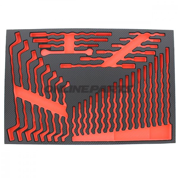 Diese leere Werkzeugeinlage von JMP ist dafür konzipiert, ein 35-teilige Werkzeugset in einer Schublade oder Transportbox zu lagern und zu organisieren. Das Produkt fungiert als formgehärtete Einlage, die einzelne Werkzeuge festhält, Bewegungen während des Transports reduziert und eine schnelle visuelle Übersicht über fehlende Teile ermöglicht.