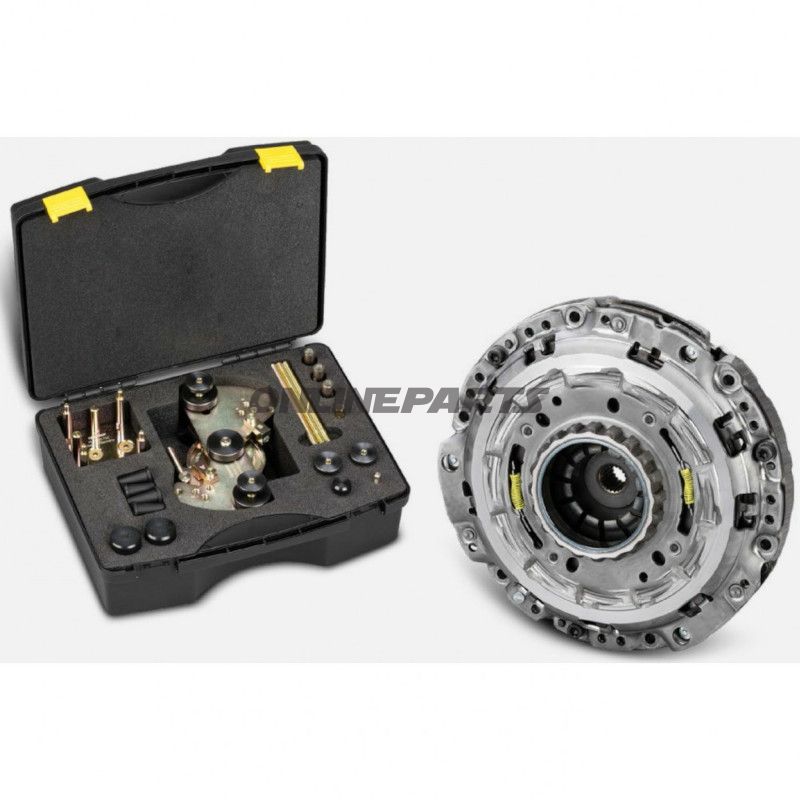 Dieses Werkzeugsatz von LuK (MPN: 614.60.27, GTIN: 4014870152406) ist für Arbeiten mit Doppelkupplungssystemen (2CT) entwickelt worden und speziell für die Trockenkupplung und Steffel der Getriebe-ID C635-DDCT. Das Set enthält Spezialwerkzeuge und Adapter, die darauf ausgelegt sind, die Montage, Demontage und Einstellung von Komponenten in diesen Getriebesystemen an Fahrzeugen von Alfa Romeo, Fiat, Jeep und Suzuki zu erleichtern.