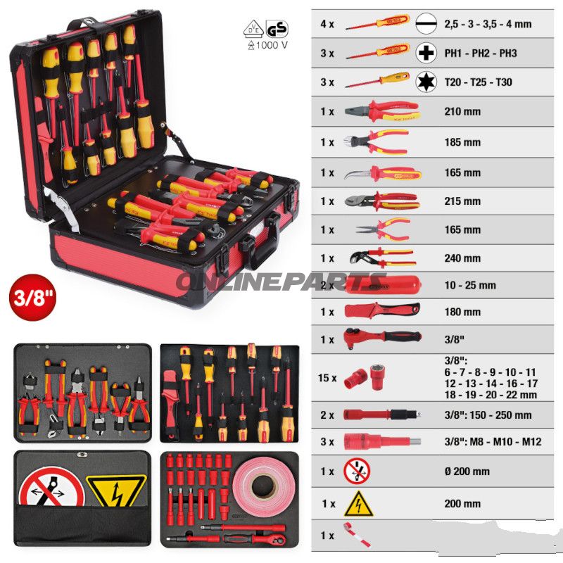 Isoliertes Hochspannungs-Werkzeugset für Arbeiten an Hybrid- und Elektrofahrzeugen (43 Teile)