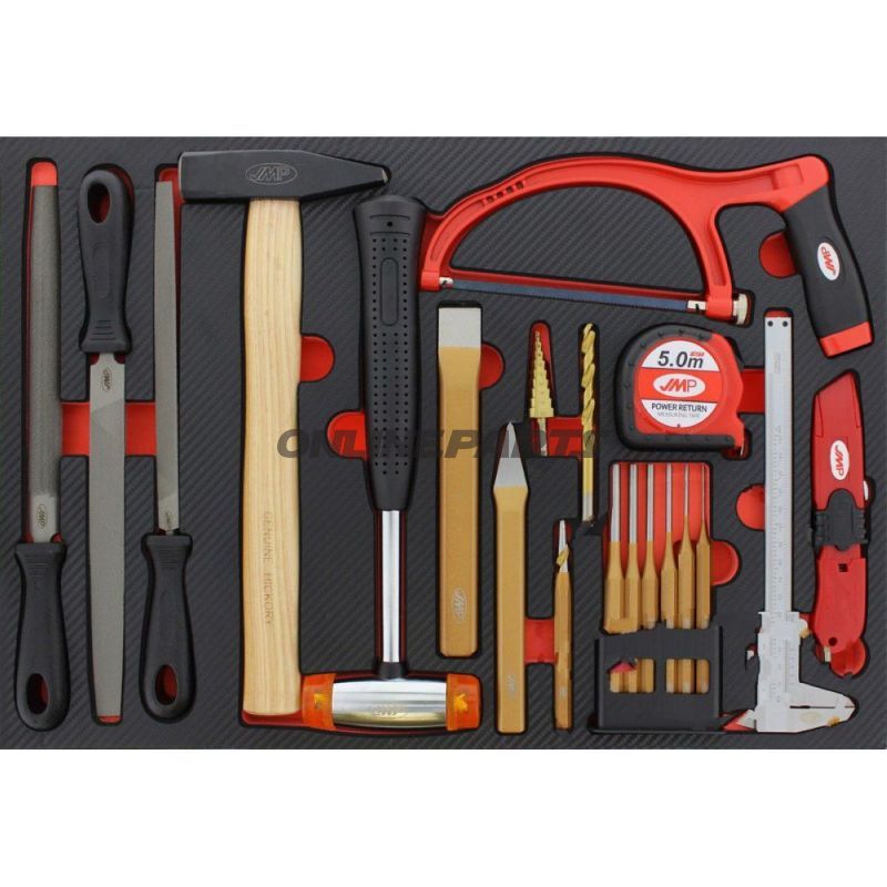 Dieses Werkzeugset von JMP (GTIN: 4043981128871, MPN: 606.00.26) ist ein Einsatz mit 20 Werkzeugteilen, der für den Einsatz in Werkstätten, an Montagetischen oder in mobilen Werkzeugwagen konzipiert ist. Das Set bündelt grundlegende Handwerkzeuge für Metall- und Maschineneinsatz in einen Einsatz, wodurch es einfach ist, den Überblick zu behalten und schnell die benötigten Werkzeuge bei Reparaturen und Justierungen griffbereit zu haben.