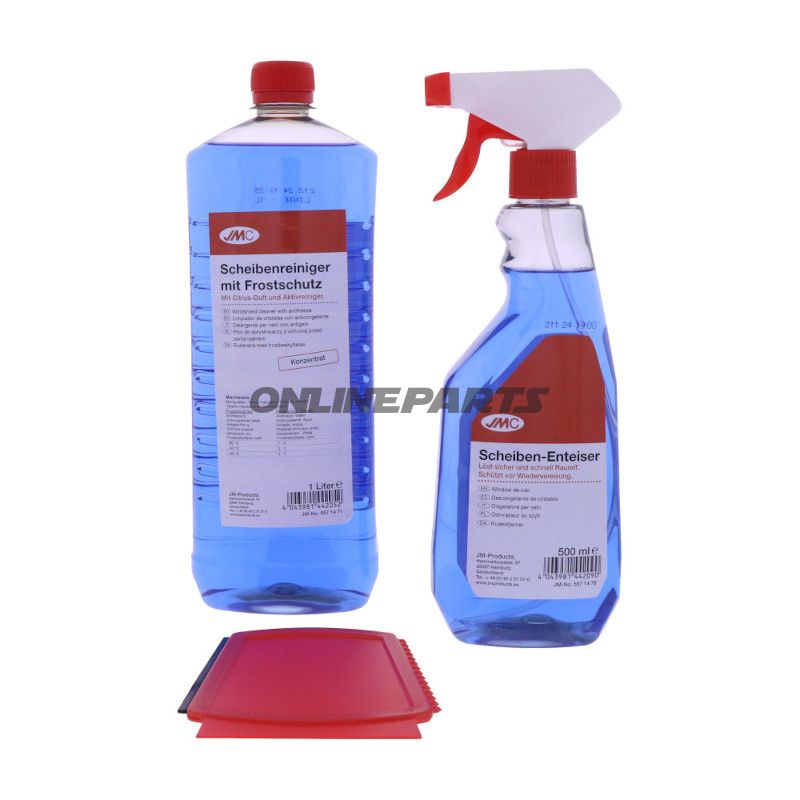 Winterset 3 Teile für die Windschutzscheibe: JMC Abtauföder, Reinigungsmittelkonzentrat und Spray