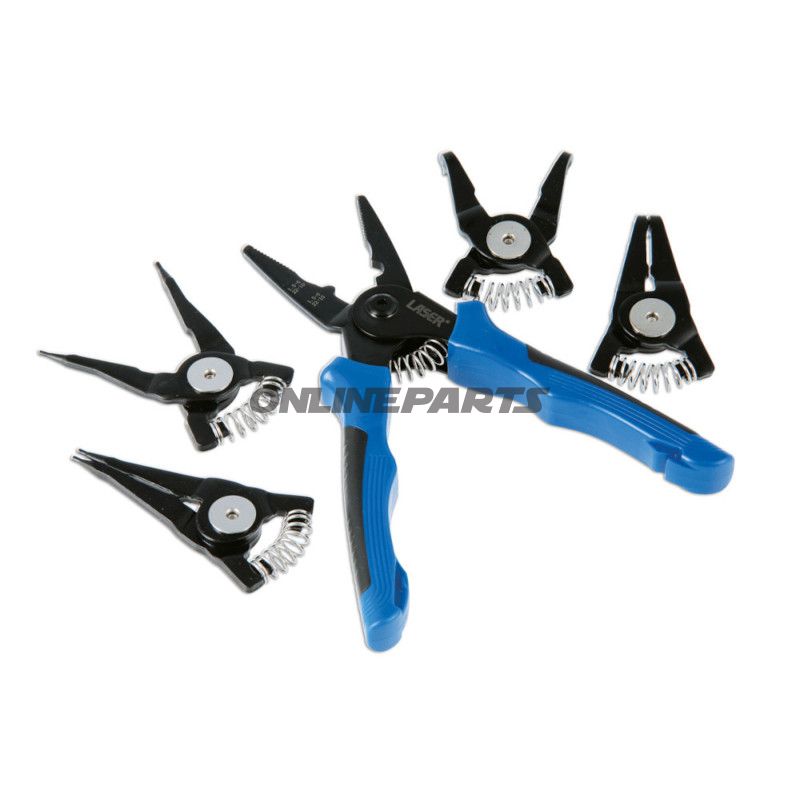 5-i-1 låsetang og krympetang med udskiftelige hoveder.