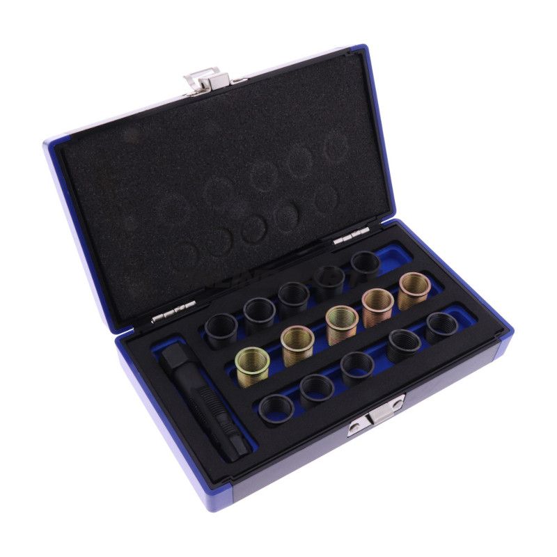 Das Set wird als vollständiges Zündkerzen-Gewinde-Reparaturset geliefert. Laut Herstellerangaben besteht es aus mehreren Gewindebuchsen in der Dimension M14 x 1,25 mit Rostschutzbeschichtung. Beachten Sie, dass Verpackungshinweise von Händlern oft die Anzahl der Komponenten im Set beschreiben, der Kunde erhält jedoch pro Bestellung ein Reparaturset.